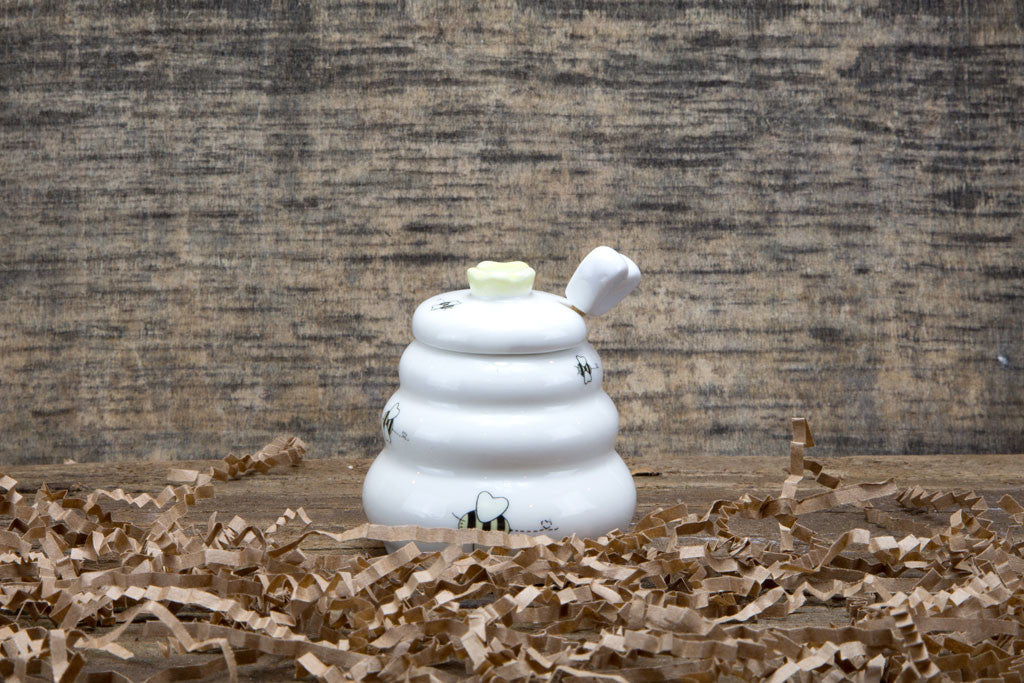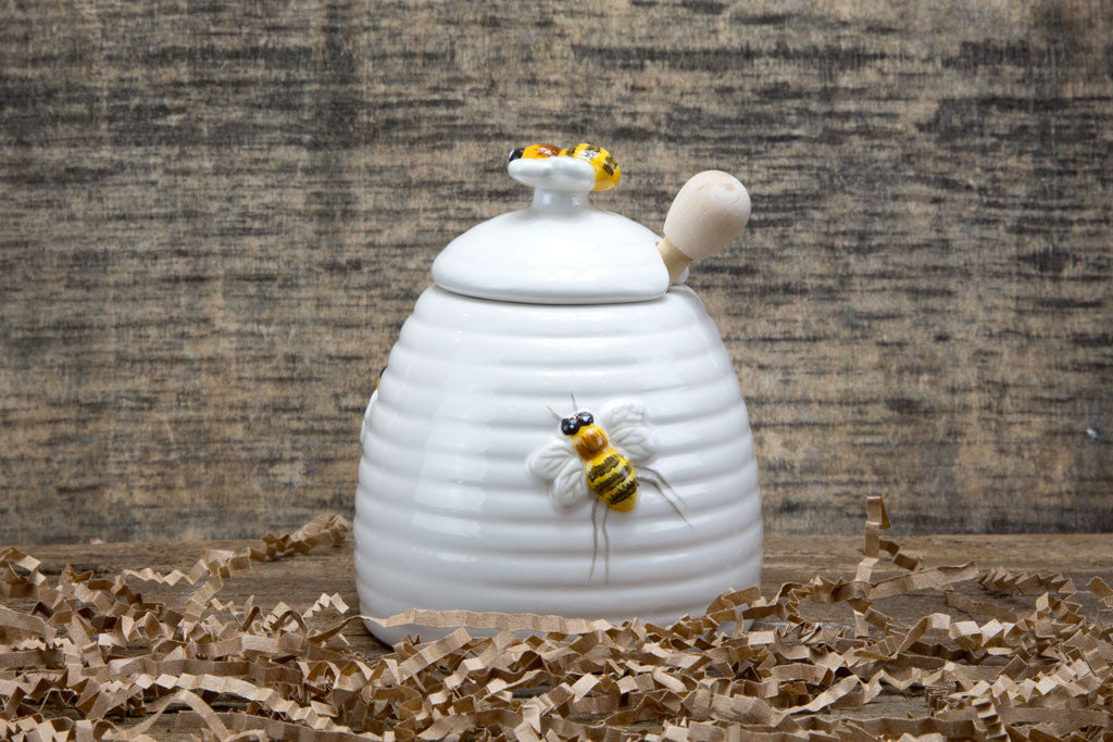 Stow away treats or store your honey in these decorative ceramic honey jars. Dishwasher & microwave safe.